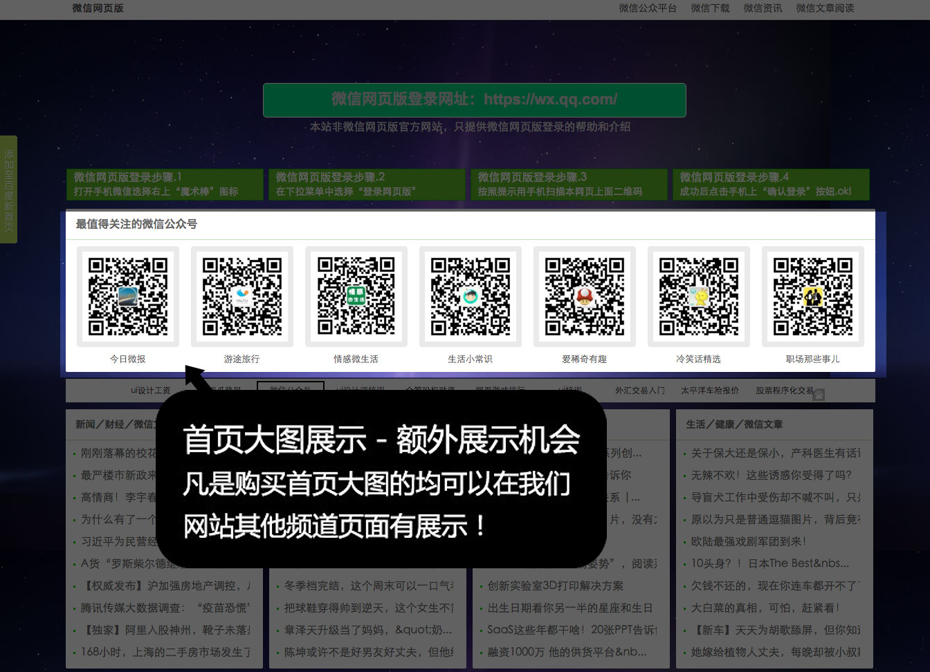 3.[钻石广告位]微信网页版页面展示位置 http://web.anyv.net/ 日访问量3000人次。