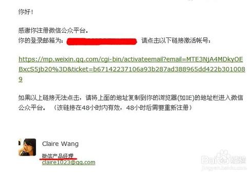 第三、接下来就要进行邮箱激活了,这样的话,我们就要进入我们的邮箱里面,找到激活邮件,直接点击激活链接。如下图所示:
